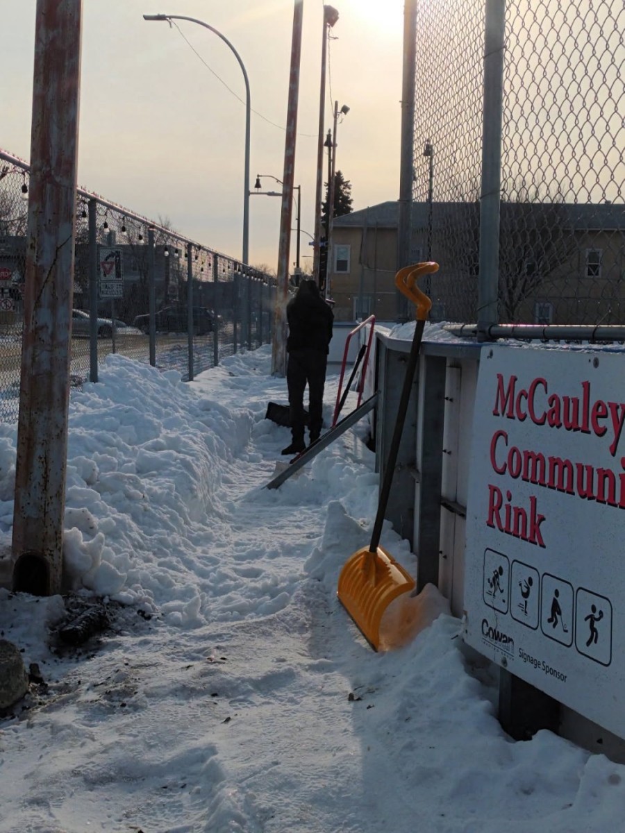Germay volunteered at the rink to help get ready for the McCauley Cup in late January. He shovelled a path in the snow for people to stand.